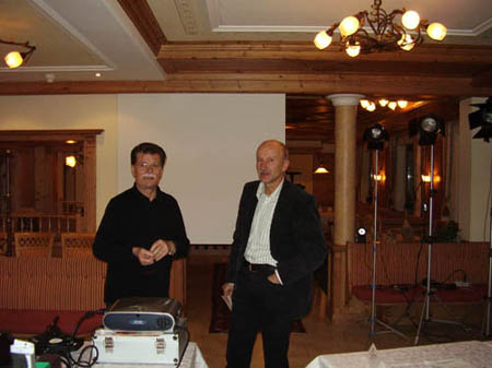 Schwarz oder Weiß, Farbe oder keine Farbe, dunkel oder hell, egal wie man das Blatt wendet oder dreht, die Seele des Bildes ist und bleibt das Licht. Und wir hatten das große Glück, einem echten „Seelenschmied“ für eineinhalb Tage zuhören und zusehen zu dürfen. Kurzweilig, spannend und verblüffend waren seine Ausführungen, den Beweis des Gesagten stets als Film oder Bild oder strategischen Zeichnungen mitliefernd. Eine Batterie von verschiedenen Leuchten aufgestellt, der „Schwindelkoffer“ voll mit farbigen Filtern, kreuzförmigen Passepartouts und sonstigen eigenartigen Textilien, die ihre Wirkung nicht verfehlten.