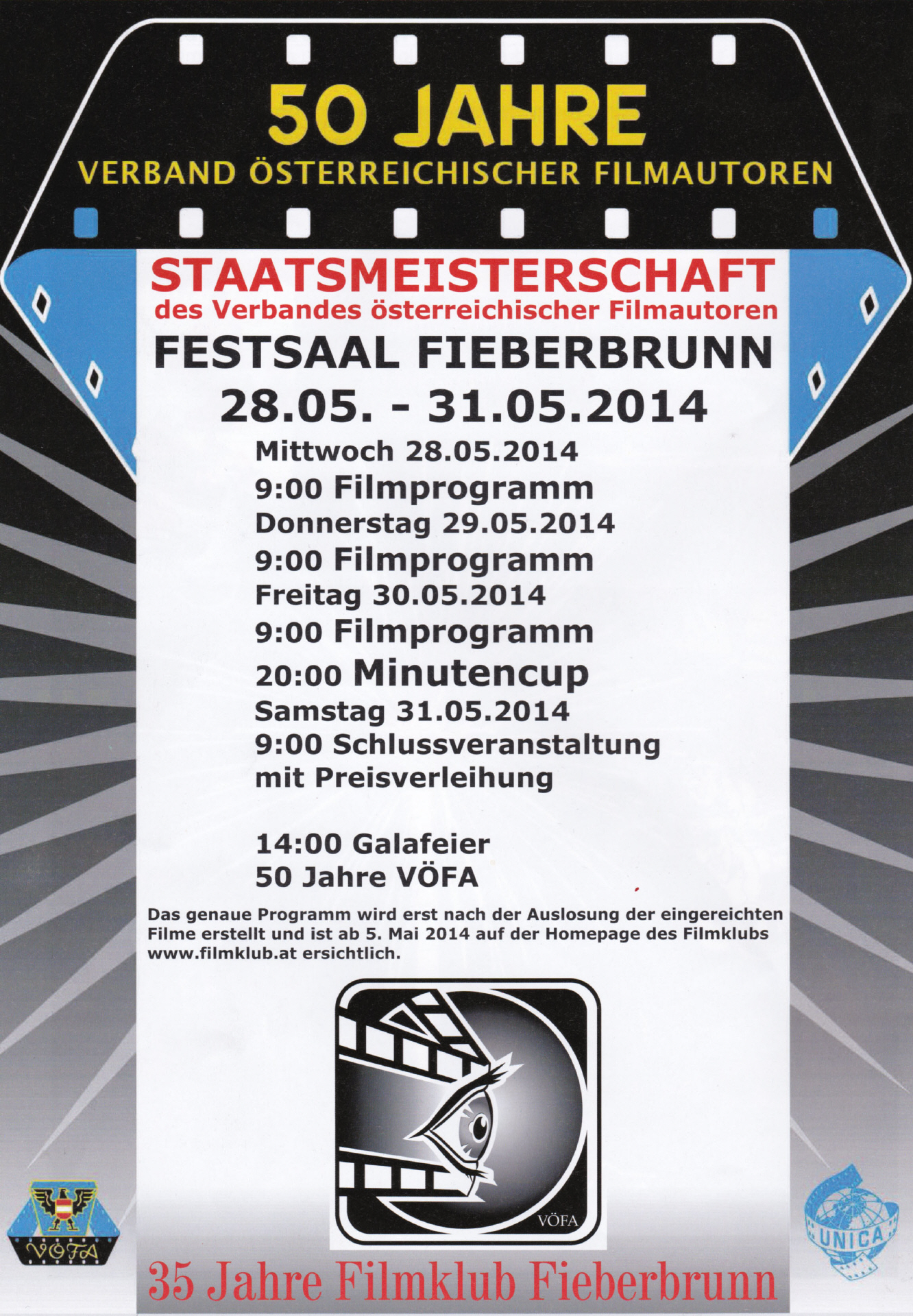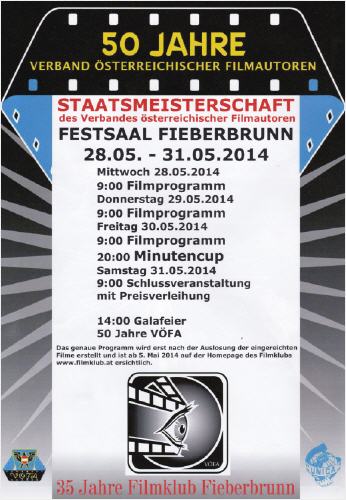 Der Filmklub gratuliert allen Preisträgern und bedankt sich für den sehr guten Besuch an den Veranstaltungstagen und für die vielen wohlwollenden Reaktionen über die Durchführung der Staatsmeisterschaft 2014 des VÖFA.